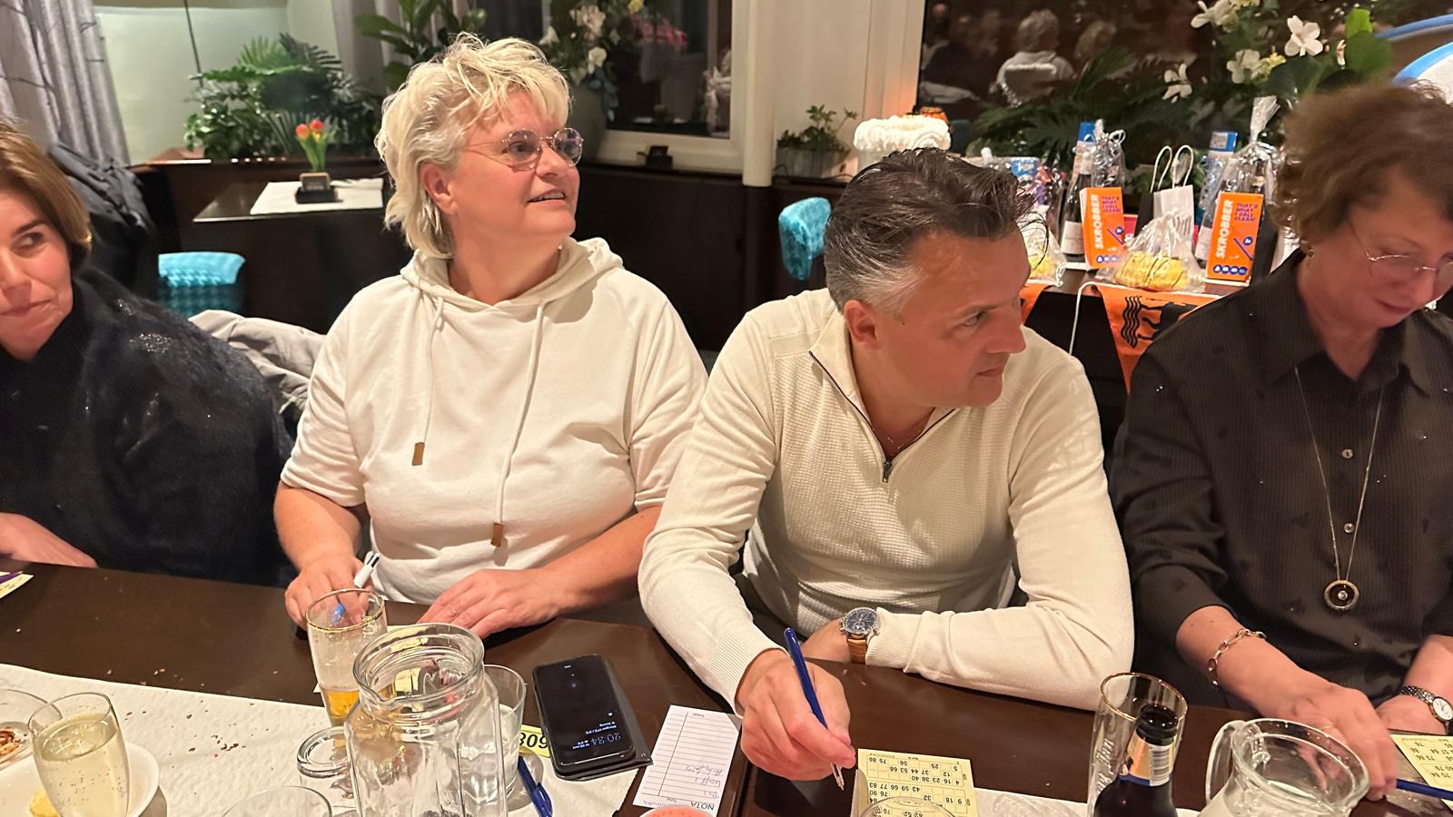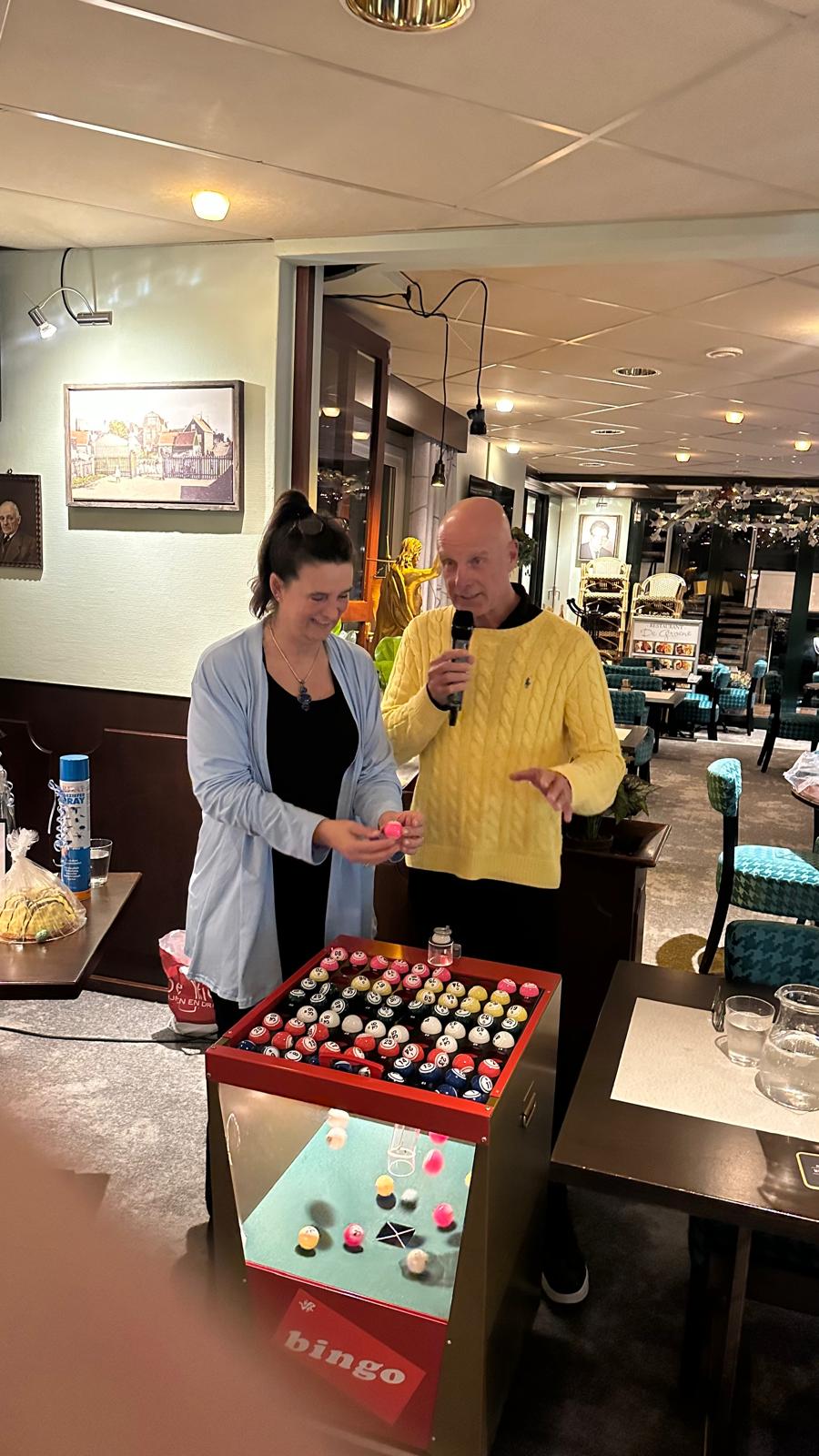 Onze bingomaster Theo had de boel volledig onder controle, gelukkig nu mèt zijn lieftallige assistente Daniëlle.