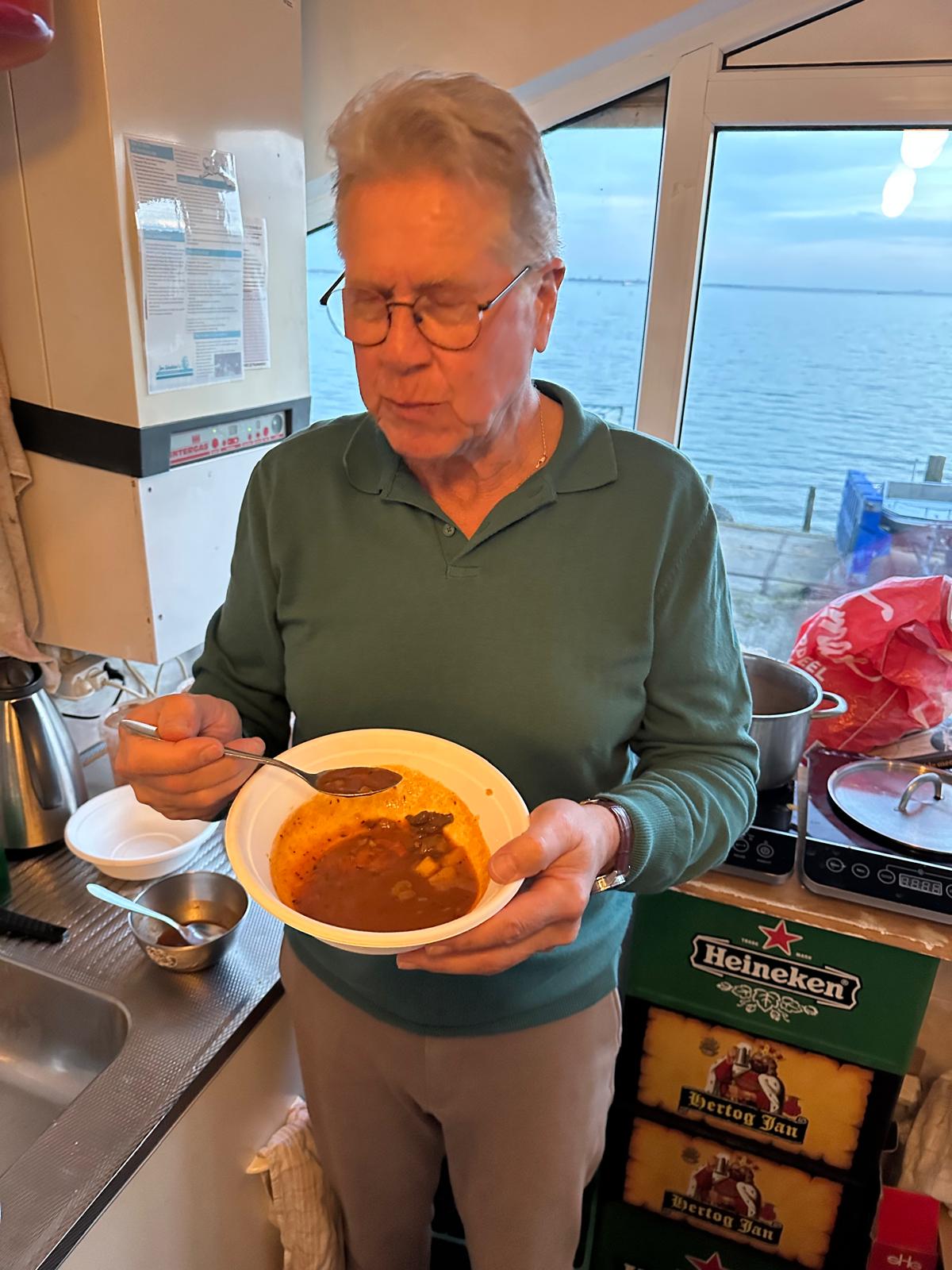 Vooraf een lekker koppie, vervolgens wat broodjes met heerlijke smeersels en daarna de zeer befaamde snert en de overheerlijke goulashsoep. Het was smullen geblazen en ook weer heel gezellig. Dank aan allen!
